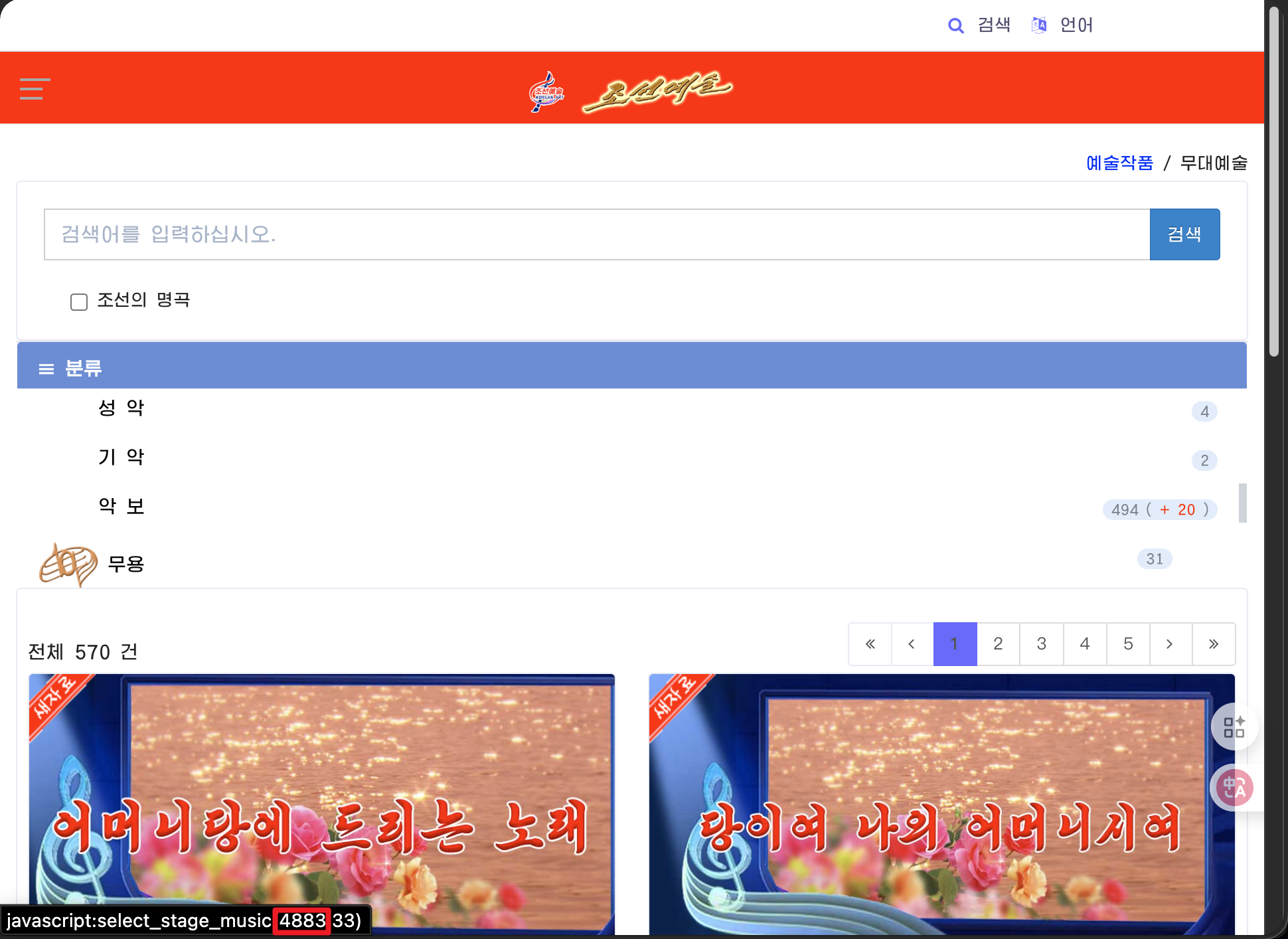 “朝鲜艺术(조선예술)”网站提供了大量朝鲜音乐和相关资料。然而,该网站不提供直观的下载链接。本文将介绍如何进行单曲下载,或使用 Python 脚本批量下载该网站的音频文件和歌词图片。